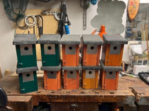 Besonders schön ist: Unsere aktiven Mitglieder packen nicht nur beim Aufhängen mit an, sondern bauen auch gemeinsam neue Nistkästen. In gemütlicher Runde wird gemessen, geschraubt und gefeilt – und am Ende entsteht etwas, das ganz konkret wirkt. Jeder fertige Kasten bedeutet eine neue Chance für Meisen, Kleiber, Sperlinge & Co.